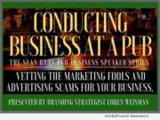 VERO BEACH, Fla., Dec. 1, 2017 (SEND2PRESS NEWSWIRE) -- Conducting Business at a Pub, the Sean Ryan Pub Business Speaker Series presents: "Vetting the marketing fools and advertising scams for your business" talk with Business Branding Strategist Loren Weisman on Tuesday, December 12, 2017 from 7:30 p.m. to 8:30 p.m. at The Sean Ryan Pub in Vero Beach, Florida.